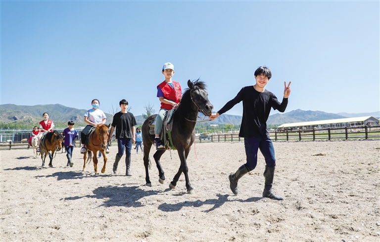 参观结束,小记者们的情绪被调动起来,都表示意犹未尽。看到孩子们渴望与马儿接触的表情,何君提出,可以让小记者骑上德保矮马感受一下。听到这样的消息,小记者们兴奋不已,纷纷举起手争相体验。