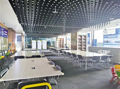 7月27日,记者在玉泉区校外教育中心托管部看到,在一间大教室里,整齐摆放着五六张大桌子,还有几十把椅子,书架上也摆满各类图书。除了这间大教室,还设有科学实验室、心理团辅室、活动室等不同的场所。