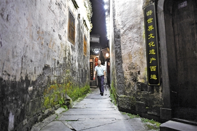 铛!深夜,一声低沉的锣响荡开在寂静的千年古村安徽西递。“80后”打更人卢磊扬起手中的木槌,走过纵横交错的深巷,将锣声送往村里的每一个角落。