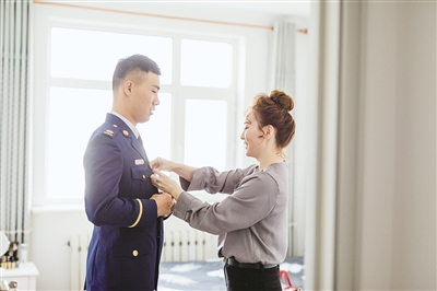 “左手牵你,右手敬礼,不负国家,不负你。”周平在七夕默默地给妻子宫丹丹发了一个信息告白,他不善言辞,对于妻子有着深深的愧疚,“我虽然每次都说让她有事不要一个人扛,背后有我为她遮风挡雨,但她总是报喜不报忧。我们之间,她总是那个付出最多,等待最多的人。”周平当日在接受记者采访时表示,眼下正值“七上八下”防汛关键期,加上驻地海拉尔出现1例新冠肺炎确诊病例,单位已经全面暂停人员休假、轮休,他和战友们都处于战备状态,无暇顾及家中,妻子却从未抱怨过一句,正是因为有了妻子做后盾,才能让他在前线毫无后顾之忧。宫丹丹却说:“他照顾的是‘大家’,我照顾的是‘小家’。我只有把‘小家’照顾好,不给他增加负担,他才能更加投入到工作中去,保障更多人的生命财产安全,才能把‘大家’照顾好。”