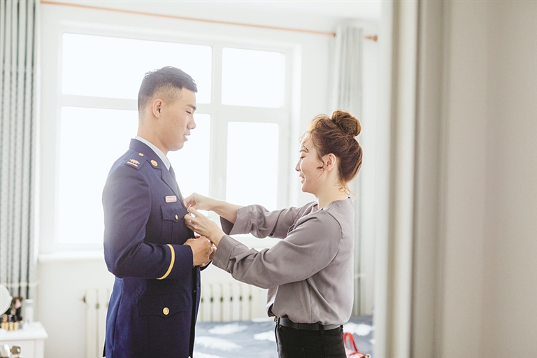 从相识、相知再到相爱,周平与宫丹丹携手走过了4个春秋,这其中的酸甜苦辣只有他们自己清楚。4来年,聚少离多是家常便饭,通过手中那块小屏幕传达思念变成他们最熟悉的交流方式。周平记得,刚恋爱的时候,上一秒还在聊天,下一秒就因为出任务突然失联了,隔三差五地才能发出去一些断断续续的问候:“在吗,我刚下岗。”“这几天太忙了,对不起。”起初他还担心爱人责怪他,甚至已经准备好了承受她的小脾气,没想到对方每次都眉开眼笑,收到的都是一句句温暖的叮咛。