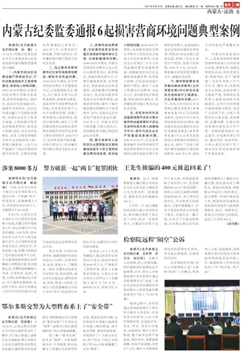 内蒙古纪委监委通报6起损害营商环境问题典型案例