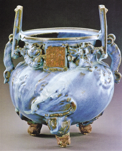 元代钧瓷出土较多,这件香炉在元代钧瓷中脱颖而出,目前尚无超越,是元代钧窑的代表作,国家一级文物。“它上面篆刻的铭文使其更加弥足珍贵,现为内蒙古博物院的镇院之宝。是迄今为止,我国发现的器型最大、最完整,制作最精湛的钧窑香炉。”张彤说。