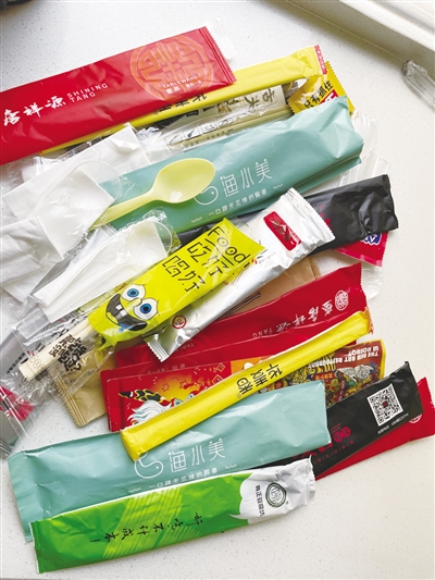 市民李静向记者展示了她攒下来的外卖配送的一次性餐具,她说:“起初在点外卖的时候,没有注意到有不要一次性餐具的选项,每个外卖公司都会默认给1~2副一次性餐具,消费者无法拒绝,这就导致了被‘硬塞’一次性餐具的现象,生活中出现很多尚未使用就被废弃的一次性餐具。后来,在朋友的推荐下发现外卖APP的不要一次性餐具的选项,就主动选择不需要提供餐具。”