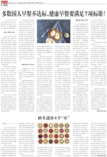 然而,国人的早餐品种丰富,营养却跟不上。中国营养学会2018年发布的《中国居民早餐饮食状况调查报告》显示,35%的人做不到每天吃早餐,55%的人早餐摄入食物种类不足3种,无法满足食物多样的平衡膳食原则。