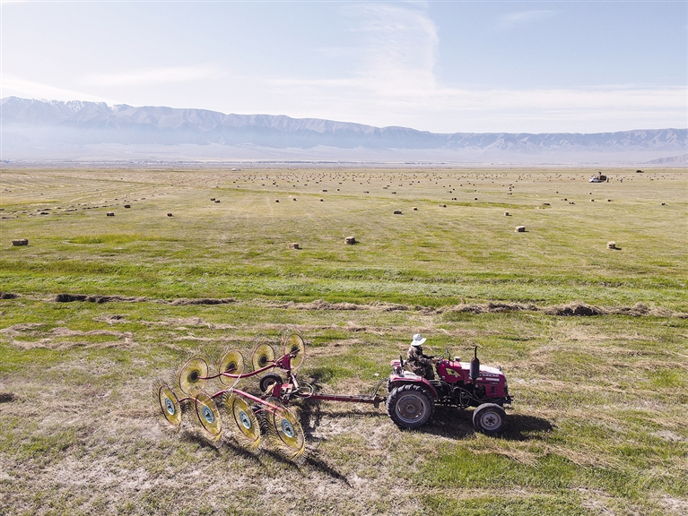 近年来,新疆机械化水平不断提高,在割草机、拢草机、捆草机等机械的协同作业下,牧草快速打包成捆,效率得到了很大提升。