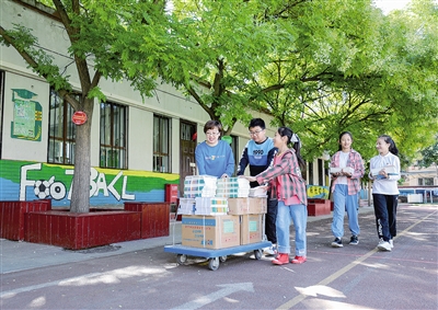 8月27日,呼和浩特市玉泉区五塔寺东街小学教师和学生代表搬运新学期教材。新学期临近,玉泉区五塔寺东街小学提前开展校园清洁消杀、防疫物资储备、教材分发、教室布置等工作,做好秋季学期开学和疫情防控准备,为即将返校的学生营造舒适安全的学习环境。 摄影/北方新报正北方网首席记者 牛天甲