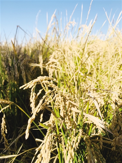 “我们培育的这个新品种叫‘金黄香三号’,其特点是抗盐耐碱、生产期短、不倒伏。‘金黄香三号’水稻是专为沿黄灌区培育的高产优质盐碱地水稻新品种。”内蒙古稼泰绿色农业开发有限公司总经理梁勋告诉记者。
