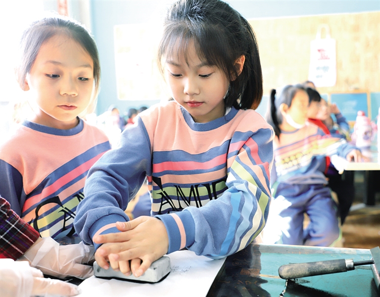 学生体验活字印刷。10月19日,赛罕区大学路小学呼伦南路校区组织二年级300多名学生开启一场别开生面的研学之旅。师生们先后来到莫尼山非遗小镇、牧勒工坊,观看和体验皮影戏、古法织布、活字印刷、手工扎染、研磨和面塑制作。此次活动旨在全面贯彻素质教育,注重学生学习能力、实践能力和创新精神的培养。 摄影/北方新报正北方首席记者 王树天
