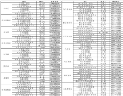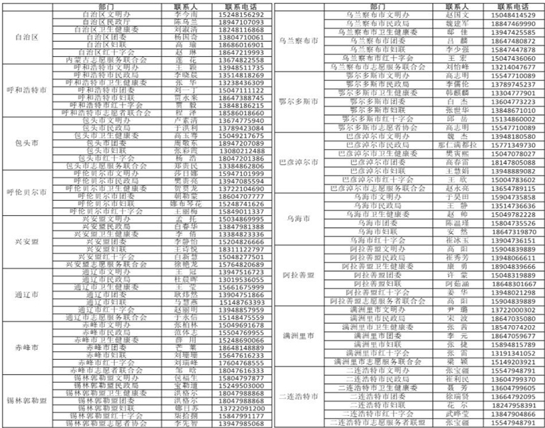 自治区和各盟市疫情防控应急志愿服务工作联系人名单