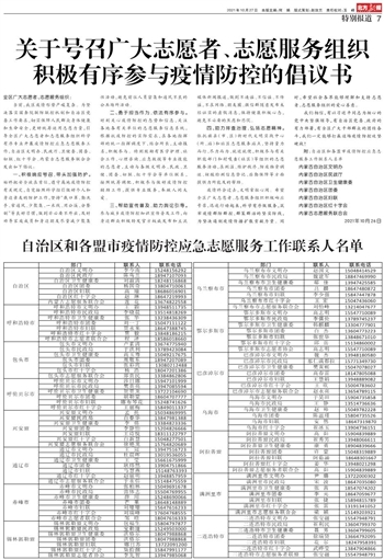 自治区和各盟市疫情防控应急志愿服务工作联系人名单