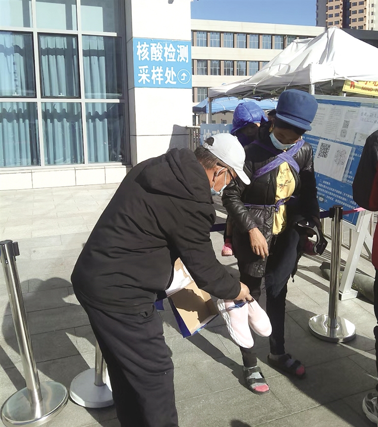 记者了解到,该女子是青海人,在和林格尔县的牧场务工,由于家中有重病人,她计划坐火车回老家,省吃俭用的她不舍得把钱花在自己身上,想把积攒的钱全部带回家。一同在核酸检测点排队的市民看到,她背上的孩子穿着温暖的新衣,她自己却穿着一双到处是洞的袜子和一双凉鞋。