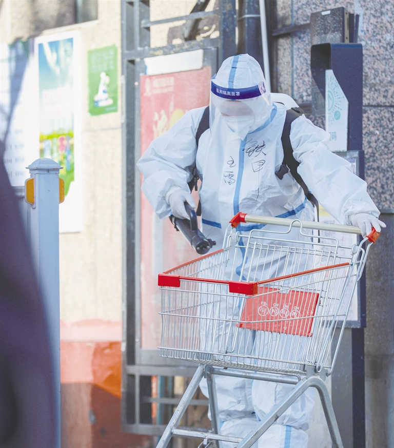 “我妹妹就在这个小区隔离呢,她跟我说其实购物很方便,他们有微信群,想买啥就在群里说,付款后就有人给送货。我这次是给她送了点我亲手做的食物,在现场看着工作人员把消杀工作做得这么好,我很放心。”前来排队等待送物资的宿根喜手里拎了两大兜吃的,欣慰地说道。和宿根喜一样,现场有很大一部分送物资的人员都是封控小区居民的亲属、朋友。