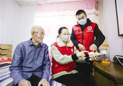 1月6日,呼和浩特市长和廊街道办塔东社区工作人员正在为86岁老人马成林家安装智能光感夜灯。为满足老人起居照明需求,该社区联合爱心企业开展“点一盏温暖夜灯 送一份冬日暖阳”主题公益活动,为辖区80岁以上老人家里免费安装光感小夜灯。目前,第一批100盏光感小夜灯已全部安装完毕。摄影/北方新报正北方网首席记者 牛天甲