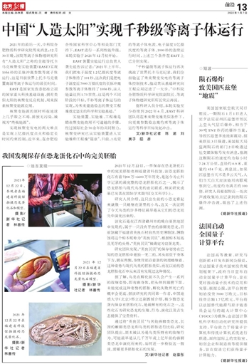 中国“人造太阳”实现千秒级等离子体运行