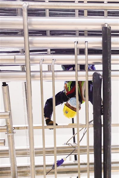 5月5日,记者在液态奶全球智造标杆基地项目建设现场看到,项目主体结构的土建已经完成,进入设备安装和调试阶段。伊利健康谷液态奶项目经理白斯古冷告诉记者:“我每天的工作是质量安全进度管控,全力保障液态奶项目高效运行。目前,项目设备安装已经完成90%,处于调试和室内工程装修阶段,预计6月投入运行。”