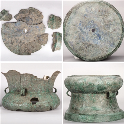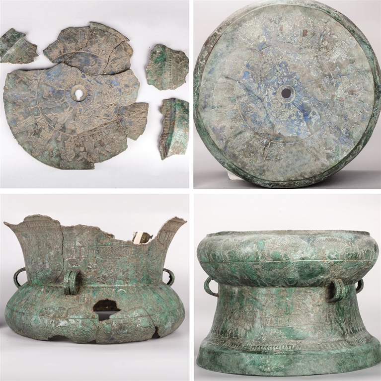 如今,一件件精美完整的贮贝器在云南省博物馆展陈,观众们可以近距离地欣赏感受其中蕴含的历史和艺术价值。然而,当它们出土时,却是残缺破碎、锈迹斑斑的模样。