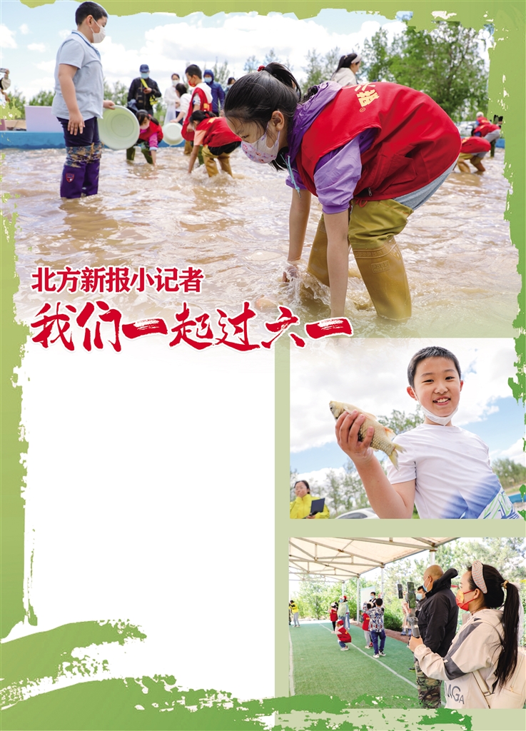 “浑水摸鱼”环节,小记者们穿雨靴进入水池,在泥水中寻找鱼儿,并发动战术协作精神,玩得不亦乐乎。