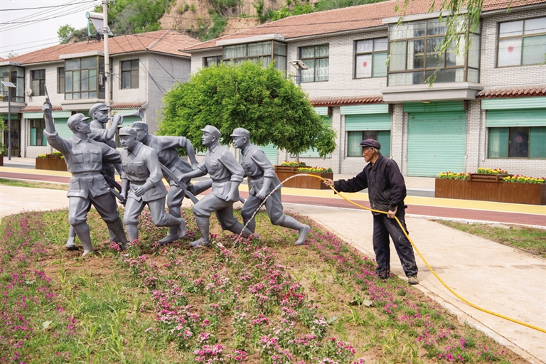 在距离砖壁村13公里的王家峪村,游客中心和宾馆已经落成,新修建的广场满眼绿植,路边工人师傅正在调试路灯和进行墙面美化。抗战时期,王家峪村曾是八路军总司令部和中共中央北方局所在地,多年来人们慕名而来。