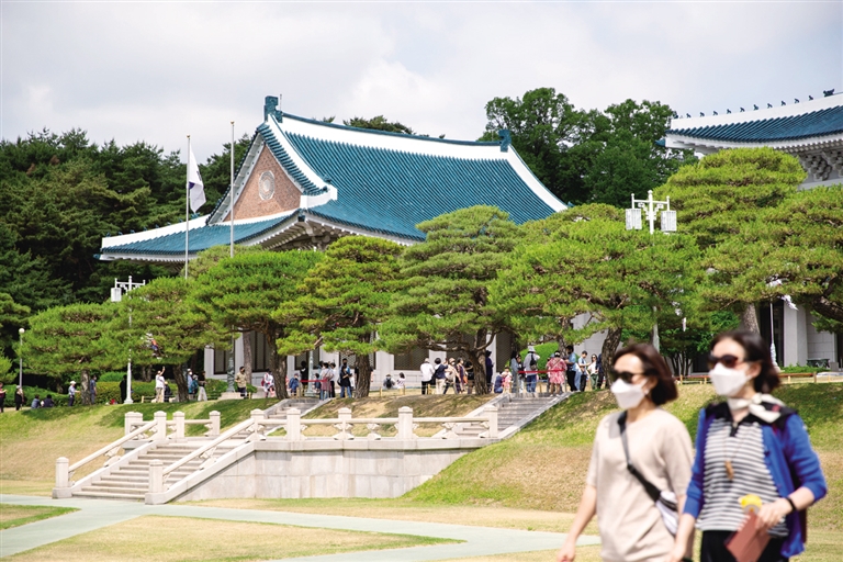 韩国原总统府青瓦台自5月10日起向公众开放。如今,在总统官邸、迎宾馆等处的基础上,游客参观范围进一步扩大。据文化财厅介绍,截至6月2日,青瓦台共接待访客达62万人次。摄影/新华社记者 王益亮