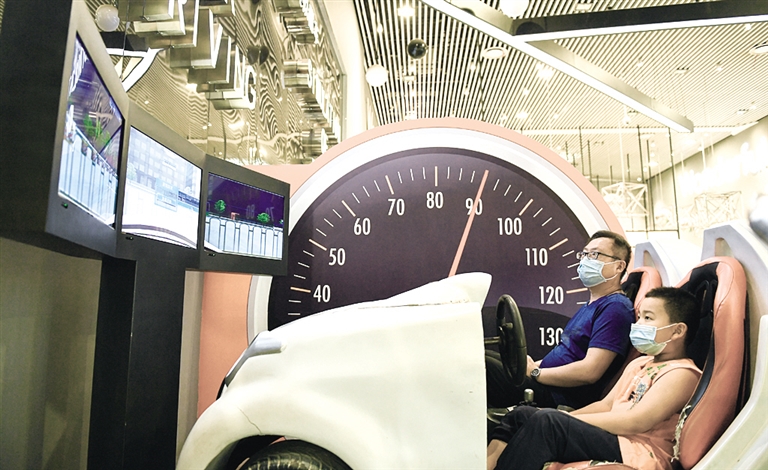 7月29日,小朋友和家长正在体验醉酒驾驶车辆时的状态。当日,内蒙古科技馆在智能空间和儿童科技园展厅举行“玩转科技馆 暑期安全小课堂”主题活动,引导大家牢固树立安全意识。摄影/北方新报正北方网首席记者 牛天甲