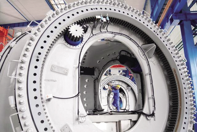 龙门吊车吊着巨型部件往来、五轴数控机床发出切削金属的吱吱声……在沈阳鼓风机集团股份有限公司,紧张忙碌的生产车间热气腾腾。