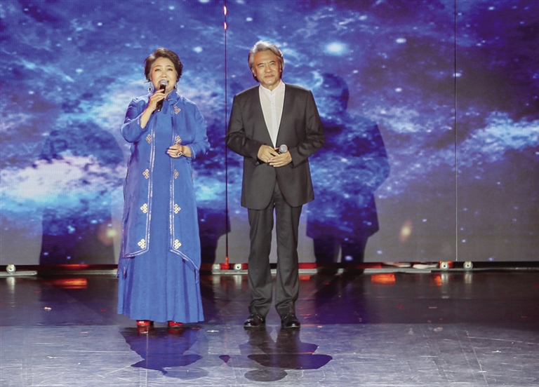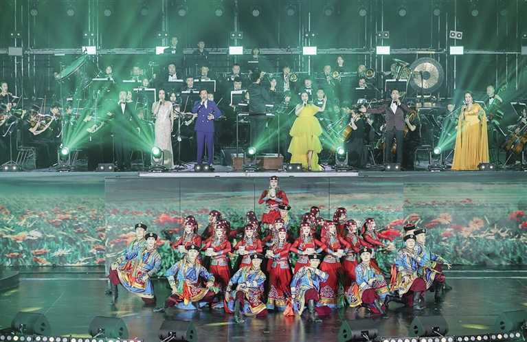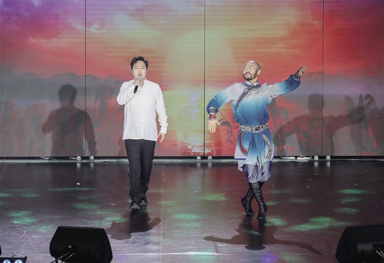 “鸿雁,天空上,对对排成行……”歌手呼斯楞深情演唱的《鸿雁》,将观众一下子带进了茫茫的草原。歌手乌兰图雅一连唱了《套马杆》《站在草原望北京》《点赞新时代》3首歌曲,台下观众跟着节奏打着节拍,现场成了欢乐的海洋。