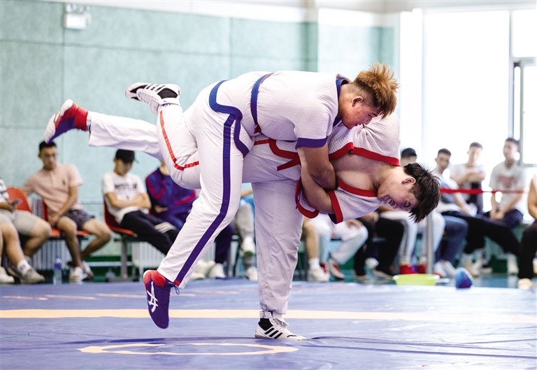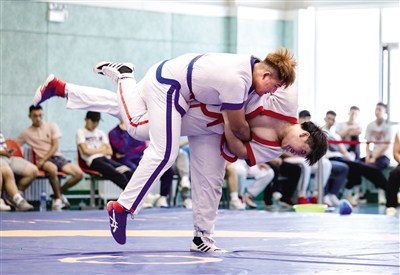 7月28日,选手在比赛中激烈较量。当日,2022年内蒙古自治区“中国体育彩票杯”青少年(中学生)中国式摔跤锦标赛在呼和浩特市开赛。来自呼和浩特市、呼伦贝尔市、巴彦淖尔市等地的15支代表队参加比赛,128名男运动员、33名女运动员争夺33个项目的冠军。摄影/北方新报正北方网首席记者 牛天甲