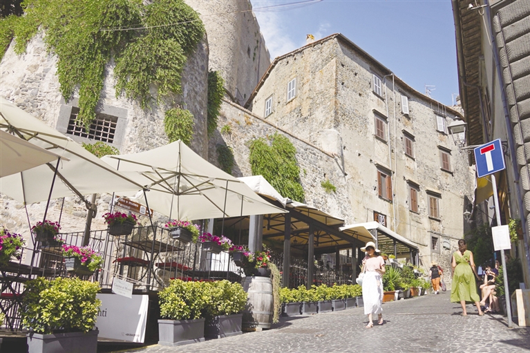 8月7日,游客在意大利布拉恰诺观光。每年8月是意大利的“国民假期”,人们在此期间享有长短不等的放假时光。摄影/新华社记者 金马梦妮