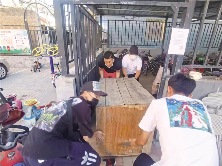 8月16日,社区工作人员清理车棚杂物。近日,呼和浩特市新城区海拉尔路街道长海社区开展系列创城攻坚活动。社区工作人员走上街头,深入小区,清除小广告、粉刷墙面、清扫路面、清理垃圾。还搭建创城惠民宣传台,呼吁居民遵守文明公约,提高文明素养,为创城贡献力量。