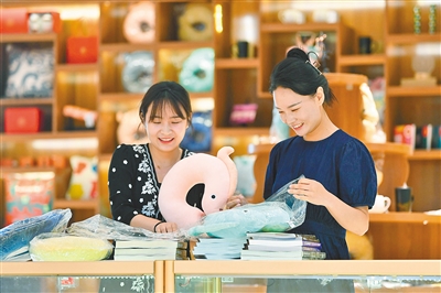 赤峰博物馆文创中心,以红山文化为设计元素的抱枕、颈枕、冰箱贴、茶具、雨伞、围巾,新颖独特。红山文化博物馆以红山文化为背景创作的狼人杀剧本,受到年轻人的追捧。