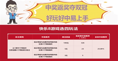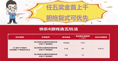 以上就是快乐8游戏“选一”至“选五”玩法介绍,下期将继续带大家了解,“选六”至“选十”玩法。欢迎新老彩民前往福彩销售站,体验快乐8游戏的多彩魅力!祝您在奉献爱心的同时,能够收获幸运!