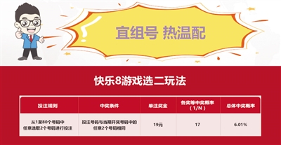 规则:若投注号码与当期开奖号码中的任意两个号码相同,即中奖,单注中奖金额19元。