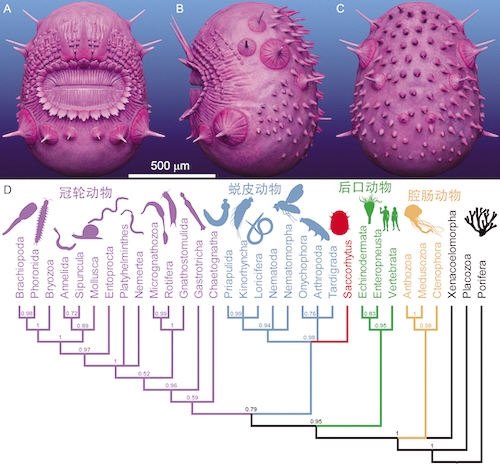 张华侨还指出,皱囊虫在蜕皮动物内部的系统位置尚未解决,它可能是环神经动物的祖先类型、泛节肢动物的祖先类型或蜕皮动物的祖先类型。