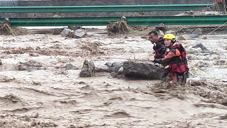 8月21日,乌海市出现强降雨天气,据气象部门统计,截至21日18时,最大累积降雨量为49.2毫米。受降水影响,乌海市城区内低洼路段和地势较低区域出现多处道路积水,人员被困等险情,当地消防部门接到报警后,第一时间组织救援力量参与救援,营救被困群众(如图)。当日消防部门共出动14车78人,营救被困人员18人,此次强降水未造成人员伤亡。