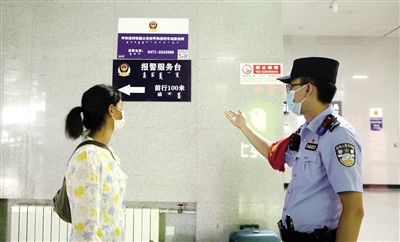 为进一步规范铁路车站等人员密集场所报警电话标识、报警点路径指引、报警服务台设置,本着“尽量让旅客少跑路”的原则,夏季治安打击整治“百日行动”开展期间,呼和浩特铁路公安处管内各派出所在原有2000多报警标识的基础上,又新张贴报警标识1500余个,并设置报警服务台17个,新增路径指引257个,张贴位置覆盖车站、旅客列车以及沿线村镇、内部单位、铁路道口、桥涵等旅客密集场所和重点部位,实现管内站车线报警标识设置全覆盖。