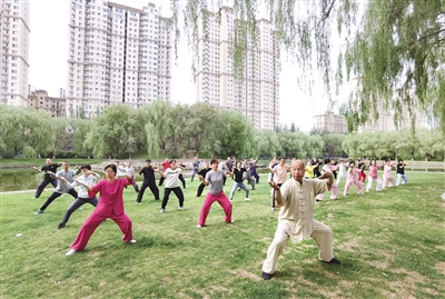 在张明科的带领下,学员们个个劲头十足,学员又自己带学生,让练习太极拳的队伍不断发展壮大。据他介绍,有不少家庭组团来学习,丈夫带着妻子,爷爷奶奶带着孙子孙女,其中还有五六岁的小学员。”在他看来,太极拳是中国文化的一个缩影,有着中国人对生命的独特理解,他会尽自己所能让更多的人通过练习太极拳传承中国文化,收获健康快乐。