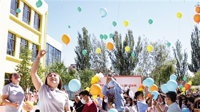 8月31日,老师、家长、孩子一起放飞气球。当日,呼和浩特市赛罕区乌尼尔东街幼儿园正式开园。乌尼尔东街幼儿园是赛罕区新建的一所公办幼儿园,设置8个教学班,提供200多个学位。幼儿园位于金城小区院内,建筑面积2600多平方米,招生对象是赛罕区正居户籍适龄儿童。园内特别设置了激发幼儿阅读兴趣、培养幼儿良好阅读习惯、帮助幼儿掌握阅读方法的阳光书吧以及培养幼儿动手能力、增强幼儿手部肌肉力量、促进手指协调配合能力、发展手眼协调能力的美工坊等特色教室。