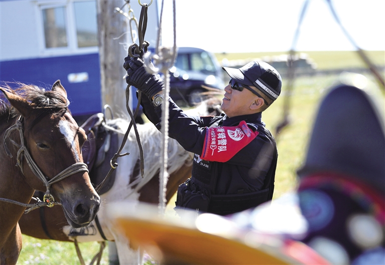 海东青骑警队的工作除了重大的赛事警卫安保,就是常年在杳无人烟的边境沿线开展巡防管控工作。常年骑行在马背上,骑警队员熟知沿线仅有的几户牧民的家庭情况,也和他们建立了深厚的感情。