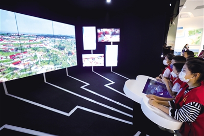 在呼和浩特市中心城区的沙盘模型前,裸眼3D大屏幕上,大黑河沿线风光带、城市流光溢彩的夜景映入眼帘,孩子们惊呼不已,仿佛经历了一场家乡版的迪士尼“飞跃地平线”项目体验。小记者李怡可不禁感慨:“呼和浩特真不愧是塞上明珠,祝愿我的大美家乡,未来更加闪耀夺目!”