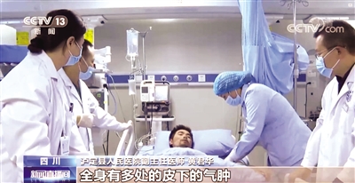 21日晚,甘宇被转运至四川大学华西医院。经初步诊断,甘宇全身多处软组织挫伤,肋骨骨折,左下肢腓骨骨折,伴有严重感染。