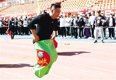 9月24日,包头奥林匹克体育中心热闹非凡,2022年包头市东河区河东镇第五届农民运动会暨第五届农民丰收节活动正在举行。26支代表队的800余名运动员参加比赛。本届农民运动会把农村劳动生活演化为运动项目,春种秋收、“绳”彩飞扬、摸石过河、探索之路、过关斩将等12个项目充满趣味。