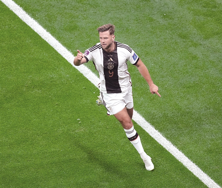 雪上加霜的是,西班牙替补莫拉塔在第62分钟的进球,让德国队陷入绝境。主帅弗里克开始调兵遣将,克洛斯特曼、萨内和菲尔克鲁格三员大将同时站在场边,德国队准备放手一搏。十几分钟后,这种搏命式的踢法终于收到成效:萨内中路送出直塞球,菲尔克鲁格得球后一脚劲射,攻破西班牙门将乌奈·西蒙的大门,比分扳成1:1!