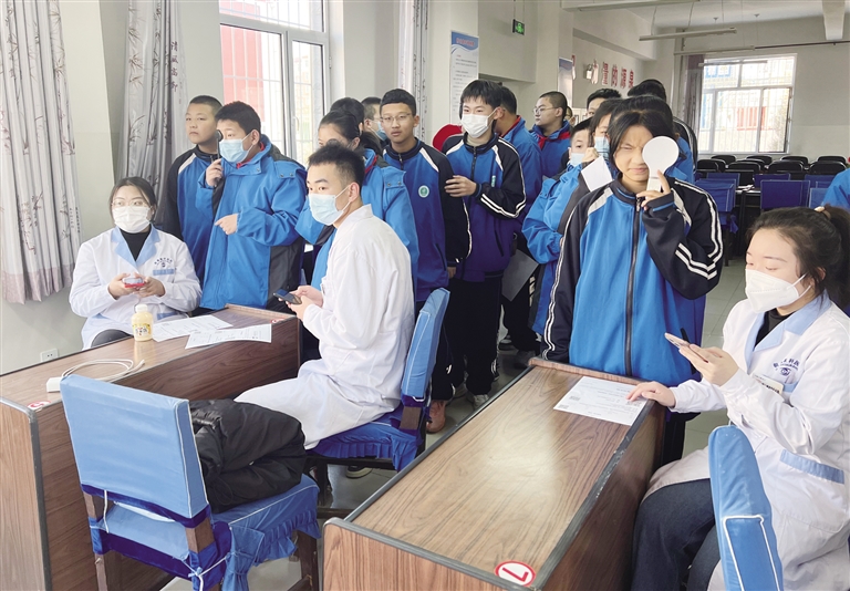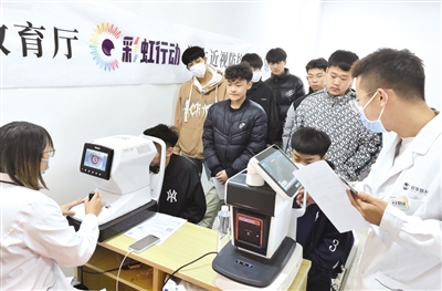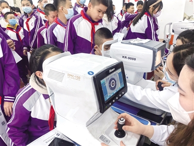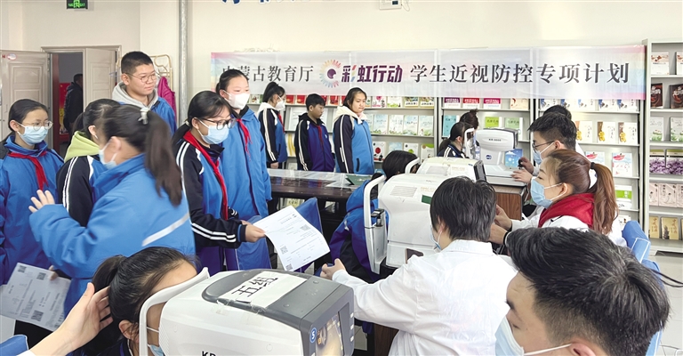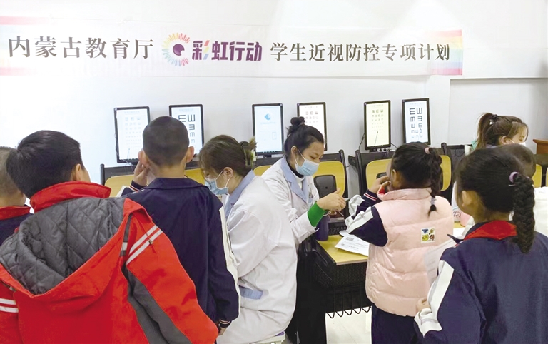 内蒙古自治区教育厅组建了一支专业医护人员团队,根据各盟市学校学生的分布,科学制订普查计划,应用先进的电子设备,有序开展覆盖全区中小学生视力健康检测工作,建立学生视力发育电子档案,普查工作人员将眼部健康数据更新到电子档案中,实现近视风险预警信息化,筛查出视力异常或可疑眼病的,提供个性化、针对性强的防控方案。学生和家长可通过手机微信便携查询检测结果,并根据系统提出的眼健康风险,及时到有资质的眼科医疗机构进行复查和治疗,真正做到近视早发现、早预警、早干预。
