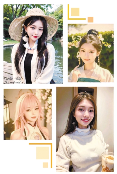 看多了AI生成的美照,不难发现,许多AI虚拟人物共用一张脸。中国联通研究院AIGC工作组组长吴浩然介绍,AI算法首先要经过训练,学习大量的图像数据,才能在人的指令下推理生成新的图像。“同一模型生成的人物图像就会有熟悉的影子,比如很多AI生成的人物图像,眉眼都有韩式网红脸的感觉,就是因为接收到的这类训练数据比较多。”