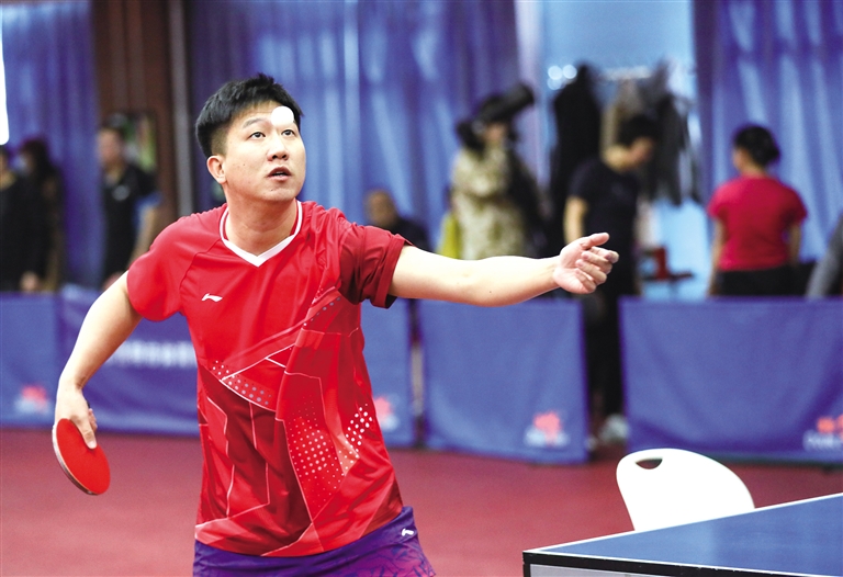 3月23日,选手在比赛中发球。当日,由呼和浩特市体育局主办的呼和浩特市旗县区乒乓球、羽毛球邀请赛在全民健身服务中心乒羽网保馆开幕。比赛为期两天,100余名选手参与争夺。此次比赛旨在加强各旗县区体育交流,为乒乓球、羽毛球爱好者提供一个竞技交流的平台。摄影/草原全媒·北方新报首席记者 牛天甲