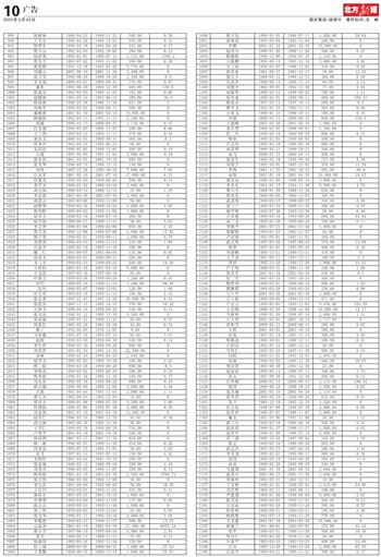 989张树林1989-04-231989-11-23500.000.36990王书小1990-04-281990-12-01350.000.12991张明东1999-03-181999-09-28345.000.17992张大山1992-04-031992-10-03200.000.12993赵祥成1998-01-011998-07-111,512.001590.2994张毛毛1993-07-021993-11-02490.000.28995庞连根1994-12-301995-03-203,770.000996刘银山2001-06-182001-11-304,400.000997张玉宝1990-06-281990-10-281,430.000.9998李文斌2000-03-012000-08-31178.000.07999聂忠1982-08-301982-12-30488.00130.61000张虎元1993-03-051993-11-05195.000.061001赵晓林1983-03-241983-06-24200.0026.91002杨富林1996-03-301996-11-30621.0021003高海军1999-02-011999-08-11500.0001004秦根贵2001-01-102001-04-1019,800.0001005杨德胜1992-04-131992-11-132,100.0001006武威2000-03-152000-09-251,120.000.411007白文成1996-03-071996-11-07180.000.061008王三狗1994-03-121994-11-11370.000.341009袁忠义2000-03-012000-08-31560.000.21010何来田1983-04-251983-06-2580.0001011朱汉民1990-01-011990-12-01590.000.191012王震1991-02-041991-11-041,000.000.581013张有何2001-04-012001-10-10800.0001014张文华1988-04-151988-12-15130.0001015刘忠1995-12-261996-10-267,000.007.041016白文军2001-02-102001-07-1017,000.006.221017任继光1999-02-031999-08-03500.000.191018袁万太1988-01-261988-10-262,000.0001019高吉如1980-04-141980-12-1415.001.391020李志国2001-04-302001-07-303,000.0001021周靠山1983-03-061983-11-0650.0001022赵树华1999-04-161999-10-263,800.004.051023张兴旺1995-04-021995-11-021,000.0001024赵买小1990-02-181990-07-18400.0001025赵万禄1980-08-211980-11-2130.005.631026李正贵1998-01-081998-02-08850.002.451027张子英1998-12-061999-07-061,088.0017.821028杨子荣1999-02-011999-08-112,000.000.791029刘俊英1996-03-241996-11-24336.001.081030石金牛1985-01-181985-11-18100.0001031滕二仁1981-09-071982-09-04135.000.051032张显文2000-03-012000-08-31300.0001033史三小1998-03-151998-09-25690.0014.261034王柱柱2001-01-102001-04-105,000.0001035牛文俊1987-02-101987-08-1050.0001036任敬光1999-03-281999-09-281,200.000.451037周明1988-07-191988-11-191,200.0060.481038三连科1986-05-071986-12-01120.001.661039贺光明1993-03-191993-11-19100.002.421040张志孝1995-01-031995-12-2010,000.008.241041张虎元1984-11-151985-10-15770.0010.421042王林小1999-03-181999-09-28538.000.141043庞文亮1996-01-121996-11-303,500.0001044朱忠福1990-01-211990-11-2120.000.271045何连红1985-05-281985-10-2840.000.741046曹三1976-05-071976-12-078.0001047马来德1983-07-101984-07-1080.003.631048赵俊1999-03-301999-09-30520.008.141049李生祥1999-03-181999-09-28880.0001050刘存贵1995-01-041995-12-2022,500.0001051高林1999-03-291999-09-291,848.0001052赵买小1989-05-031989-10-30100.005.041053韩二蛇1999-03-281999-09-28800.000.31054李海亮1999-03-011999-08-30500.000.181055韩来根1996-01-161996-11-16188.000.171056刘志忠1999-03-181999-09-28600.000.161057曲占彪1996-08-091996-12-097,000.004.481058王震1992-04-041992-12-042,000.001.151059曹九元1965-08-041965-12-0410.0001060贺在小1998-01-081998-07-283,500.002.061061任国权1998-07-091999-01-303,000.000.991062刘金海2001-01-102001-04-1013,000.0001063赵守仁1986-04-201986-11-2040.000.391064武占海1983-06-301983-12-3030.0001065王守仁1999-03-181999-09-28730.0001066卢利平2001-04-102001-10-20500.0001067韩尚利2001-07-212001-11-30810.0001068陈一新1990-05-071990-11-30410.000.261069冯存亮1983-07-231983-11-0150.005.891070高飞1997-01-141997-07-14150.004.431071李栓柱2001-04-012001-10-10500.0001072张金瑞1999-03-131999-09-20200.002.181073刘来兵1996-03-071996-11-07350.000.121074韩来根2001-01-102001-04-302,560.002709.721075张子伟1966-05-091966-12-0910.0001076李九在1981-09-041982-08-0450.0010.391077王长印1994-02-011994-11-01330.000.111078曹柱小2001-05-252001-10-251,800.0001079乔勇明1993-04-091993-11-09137.000.051080赵占山1995-03-231995-11-301,500.0001081张三埃1976-03-031976-12-0325.009.051082张文华1996-01-111996-10-304,000.003.661083李根虎1990-04-271990-11-27500.0013.231084云起寿2001-01-102001-04-3011,400.006878.181085郝小平1997-08-191997-08-285,000.002.941086朱卫1980-02-131980-11-1325.000.741087赵淑珍1992-03-261992-11-26150.0001088任三福2000-03-012000-08-311,800.0027.641089王秉雄1990-06-151990-11-151,000.0025.831090张子英1998-01-011998-07-111,260.0026.041091郝林虎1995-04-041995-11-04280.0001092李雄2001-01-102001-10-1015,000.0001093赵买小1990-01-201990-11-20500.000.271094杨德胜1998-12-061999-07-162,210.0001095王海蝉1995-09-141995-12-103,000.003.021096王三喜1996-03-071996-11-07350.000.281097张有良1981-08-171981-12-1750.0012.931098张五小1988-02-121988-12-12400.000.291099闫录业1990-06-141990-11-1480.002.121100刘根才1982-09-011982-12-3077.009.841101高海鱼1998-03-151998-09-25700.001.111102张有宽1999-02-011999-08-11900.00436.351103杨连兵1997-03-131997-10-13600.000.21104韩守义1992-01-231992-11-23394.000.961105王忠义1988-01-151988-10-15700.000.441106李银2000-03-152000-09-25860.00578.91107王建峰2001-04-302001-09-167,000.0001108史占荣1988-02-011988-09-011,200.0031109任二生1999-03-181999-09-28800.000.211110杨春1999-02-031999-08-03300.0001111吕文佳1999-03-181999-09-28800.0001112高崇明1999-04-111999-10-21390.0001113高飞2000-01-152000-04-15900.0001114张其生1999-03-181999-09-28753.000.381115刘保子1992-04-011992-12-01450.0011.291116李狗1981-11-251982-10-25205.0038.91117高俊2001-01-102001-04-1019,900.0029.671118梁有亮1998-01-081998-07-183,000.0001119李志礼1994-01-171994-11-305,500.004.531120智六小1988-01-201988-12-20630.0001121柴永差1986-06-031986-12-03300.0001122武茂荣1998-03-151998-09-25330.000.081123袁三三1988-01-191988-11-30300.009.071124康罕维1983-07-301983-12-3050.008.481125吕有根1999-03-181999-09-28880.0083.041126高二文1985-01-201985-06-20160.000.111127李海平2001-07-212001-11-301,080.0001128张根锁1983-01-271983-11-2740.0001129卢治国1992-05-011992-11-01400.0001130武文明1997-03-261997-09-26570.0014.081131