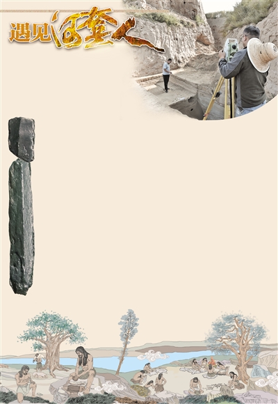 “清晨,金色的阳光洒在水草丰茂的萨拉乌苏,‘河套人’从梦中醒来,开始一天的忙碌。女人们一边照顾孩子,一边采集可食的植物根茎和种子。男人们,有的在打制石器,有的在修整工具,有的在切割捕获的猎物……夜幕降临,忙碌了一天的人们围坐在火堆旁,用树枝挑着肥嫩的羚羊肉烧烤,诱人的香味四处弥漫……”走进鄂尔多斯市乌审旗正在布展的萨拉乌苏遗址博物馆,一组“河套人”生活复原图让人穿越时空隧道,感受日月轮转。