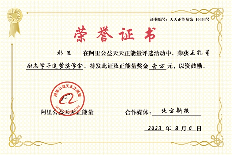家住锡林郭勒盟正蓝旗上都镇巴雅吉呼小区的19岁女孩都兰,每天的生活是从给妈妈洗脸、推姥姥出门晒太阳、煮饭、打扫家开始的。虽然生活过得艰辛,她却像一朵向阳花,温暖着身边每个人。今年高考,都兰以546分的成绩考进西南大学。为激励逆境学子勇敢追梦,本报联合阿里公益天天正能量授予都兰1万元“正能量励志学子追梦奖学金”。