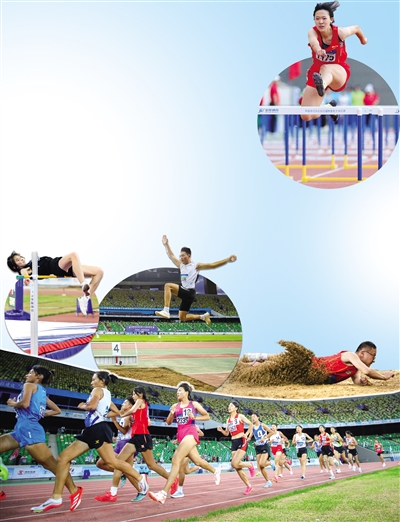 据了解,田径比赛为期5天,共分为男子甲乙组各25项、女子甲乙组各25项、男子丙组22项、女子丙组22项、乙组混合接力1项和丙组混合接力2项。12个盟市和内蒙古体育职业学院共13支代表队的1000多名运动员分为甲、乙、丙三组,参加男女100米、200米、400米、800米、1500米、3000米、4×100米接力、跳高、跳远、铅球等项目角逐。开赛首日,100米、400米、铁饼、铅球和跳远等项目同时进行。由于天气原因,场地湿滑,但运动员们迎风冒雨,发扬顽强拼搏的体育精神,完成了一次次的精彩对决。